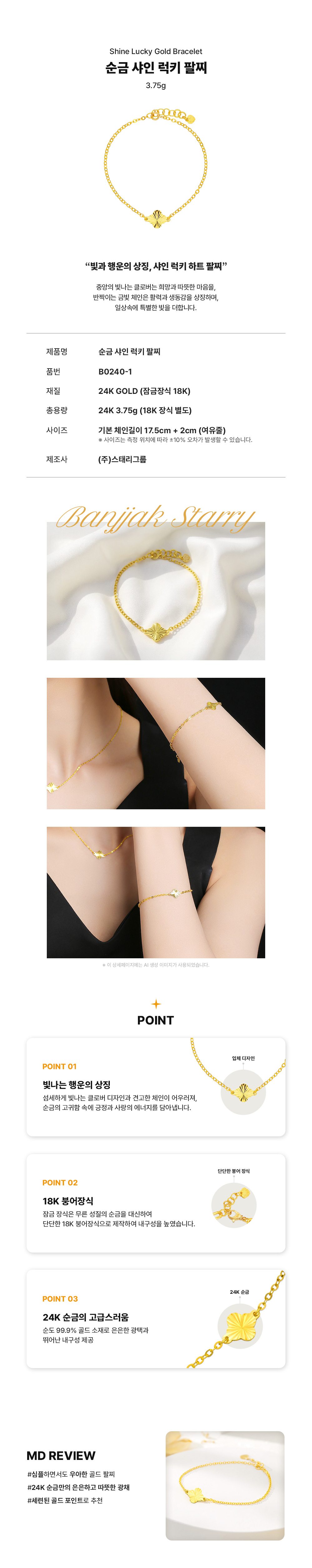 순금 샤인 럭키 팔찌 3.75g