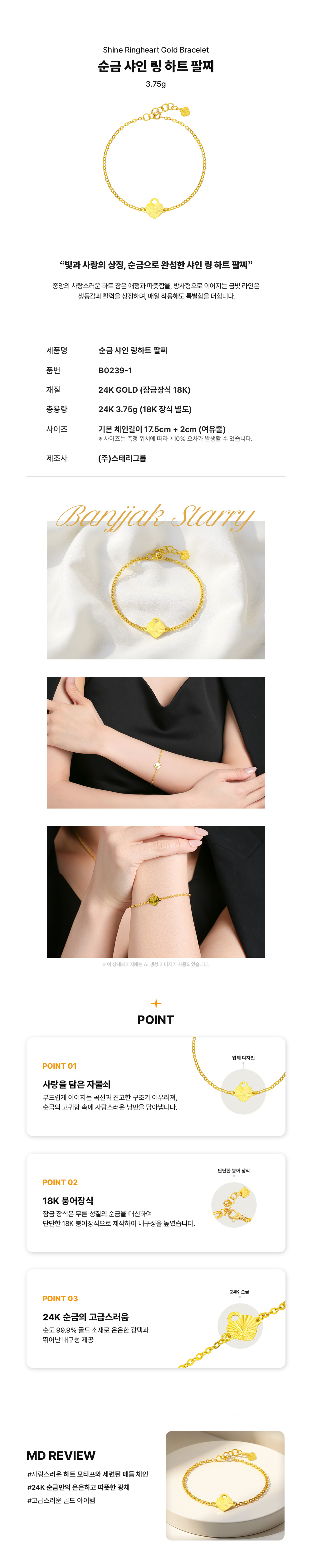 순금 샤인 링하트 팔찌 3.75g