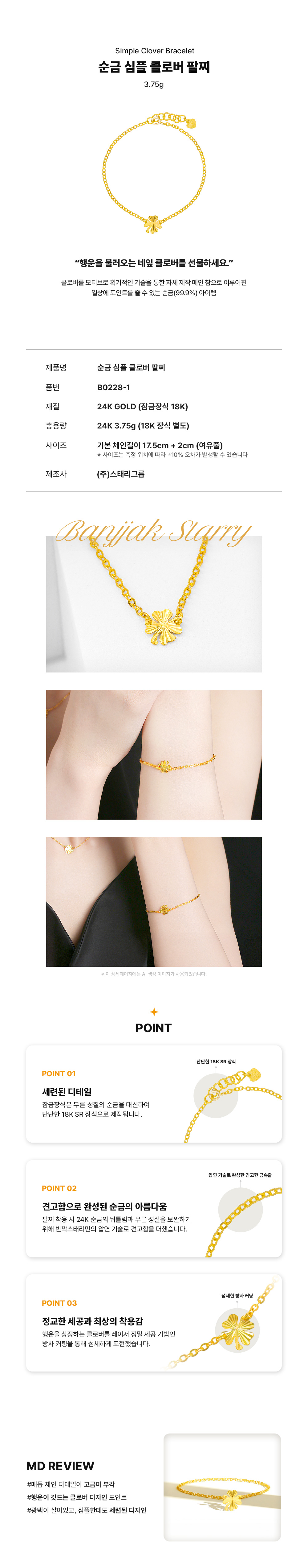 순금 심플 클로버 팔찌 3.75g