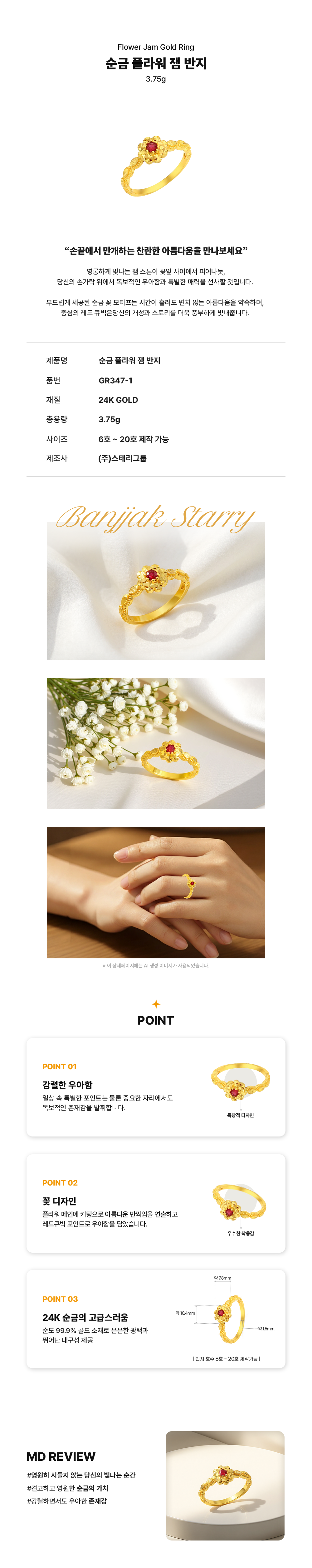 순금 플라워 잼 반지 3.75g