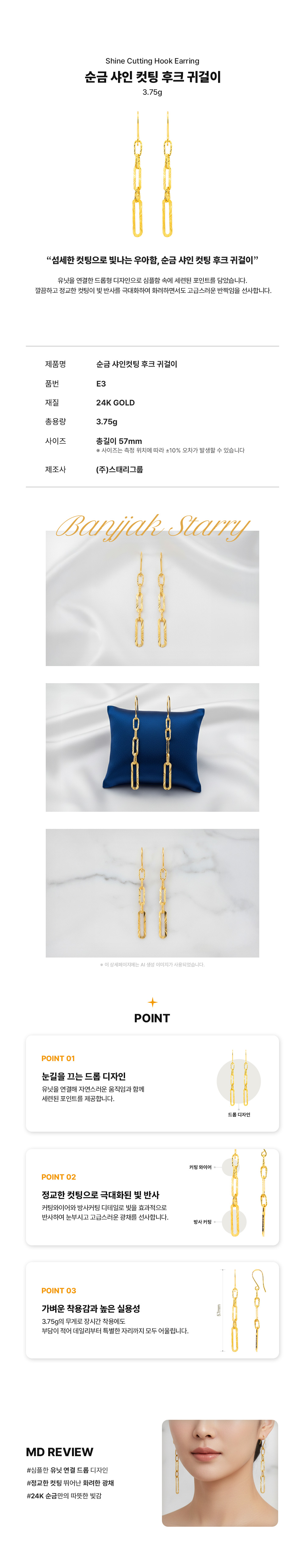 순금 샤인컷팅 후크 귀걸이 3.75g